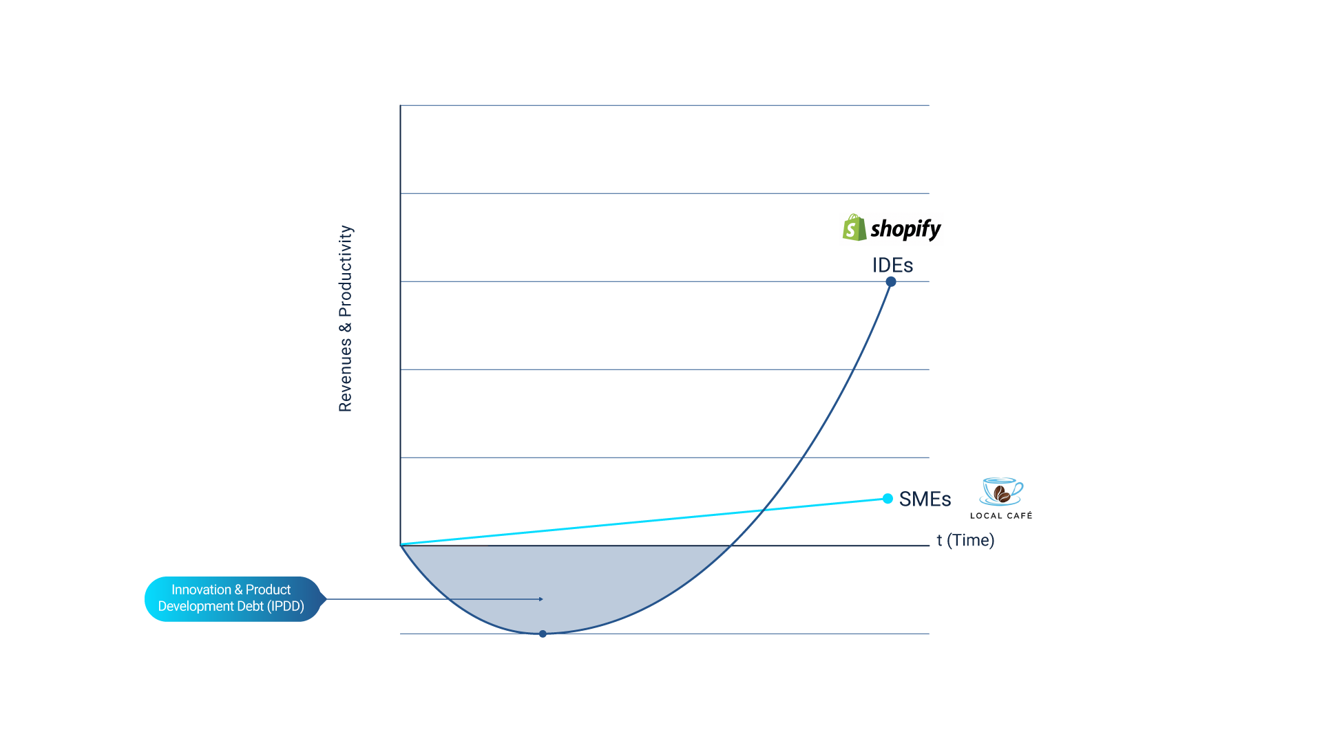 Per Bill Aulet, “innovation and product development debt (IPDD)” is the gap or “valley of death” between an idea and a market-ready product. During this period, revenue is minimal or nonexistent, so IDEs rely heavily on risk capital (angel investors, venture capital, non-dilutive grant funding, etc.) and/or sweat equity to fund R&D and initial go-to-market efforts.