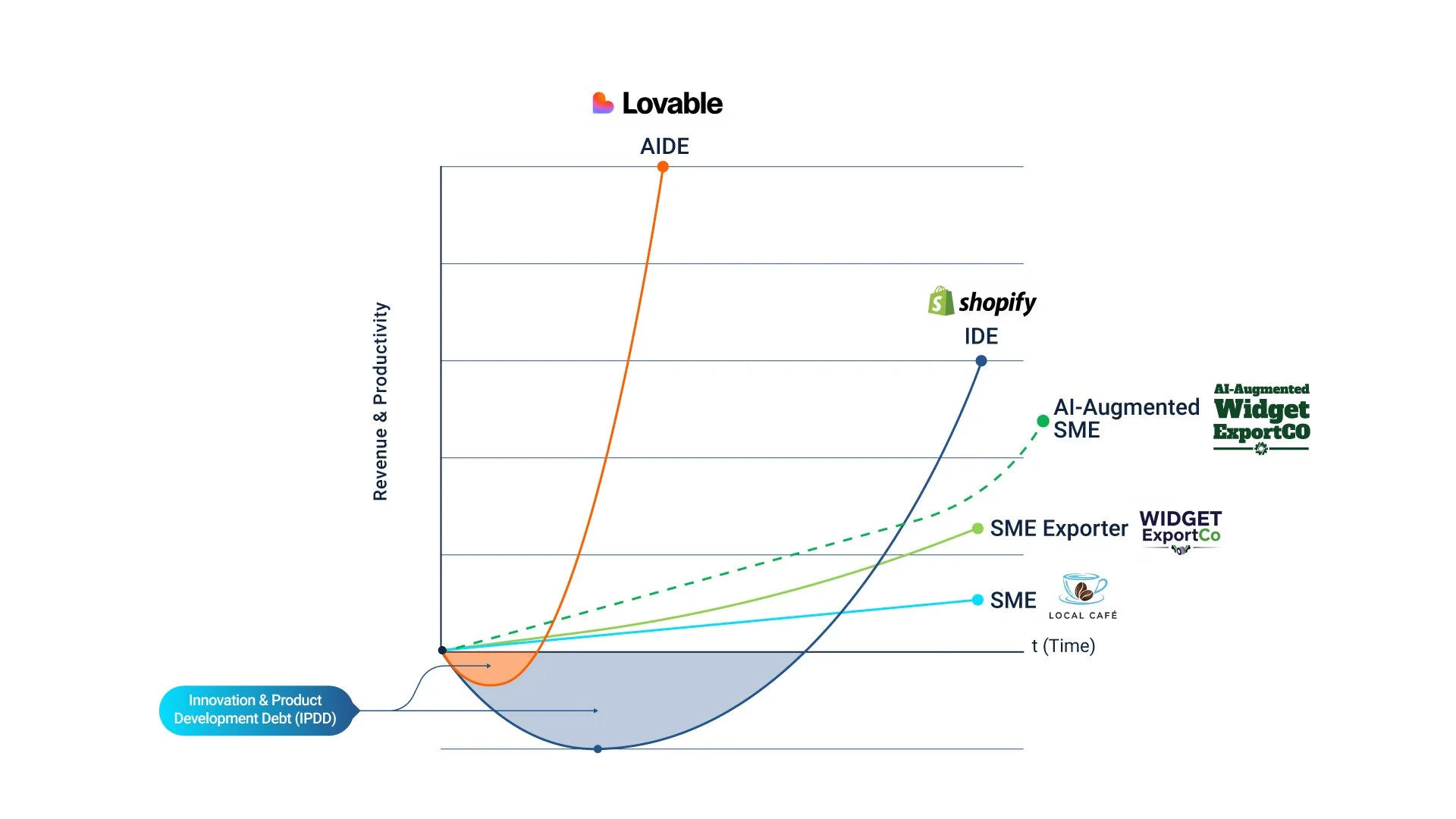 Traditionally, this transformative potential has been reserved for Innovation-Driven Enterprises (IDEs)—firms such as Shopify that are designed around disruptive technologies with substantial capital and long innovation cycles. Small and Medium-sized Enterprises (SMEs) such as your local coffee shop, are typically deeply rooted in their communities and operating with lean resources, typically cannot harness these opportunities. But SME exporters, a distinct subset of SMEs specifically engaged in selling products and services internationally, possess untapped potential. How can these SME exporters, characterized by incremental innovation and modest scale, leverage artificial intelligence (AI) to shift their growth trajectories from linear to exponential? Interestingly, Shopify started as an online snowboard shop before transitioning to the IDE we know it as today.