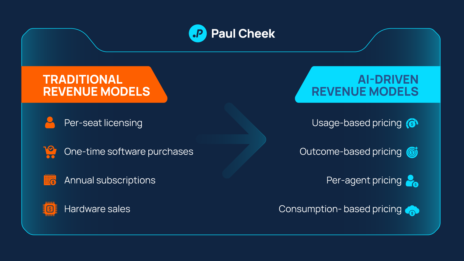 Figure 1: The evolution from traditional software revenue models to AI-driven approaches represents a fundamental shift in how value is created and captured.