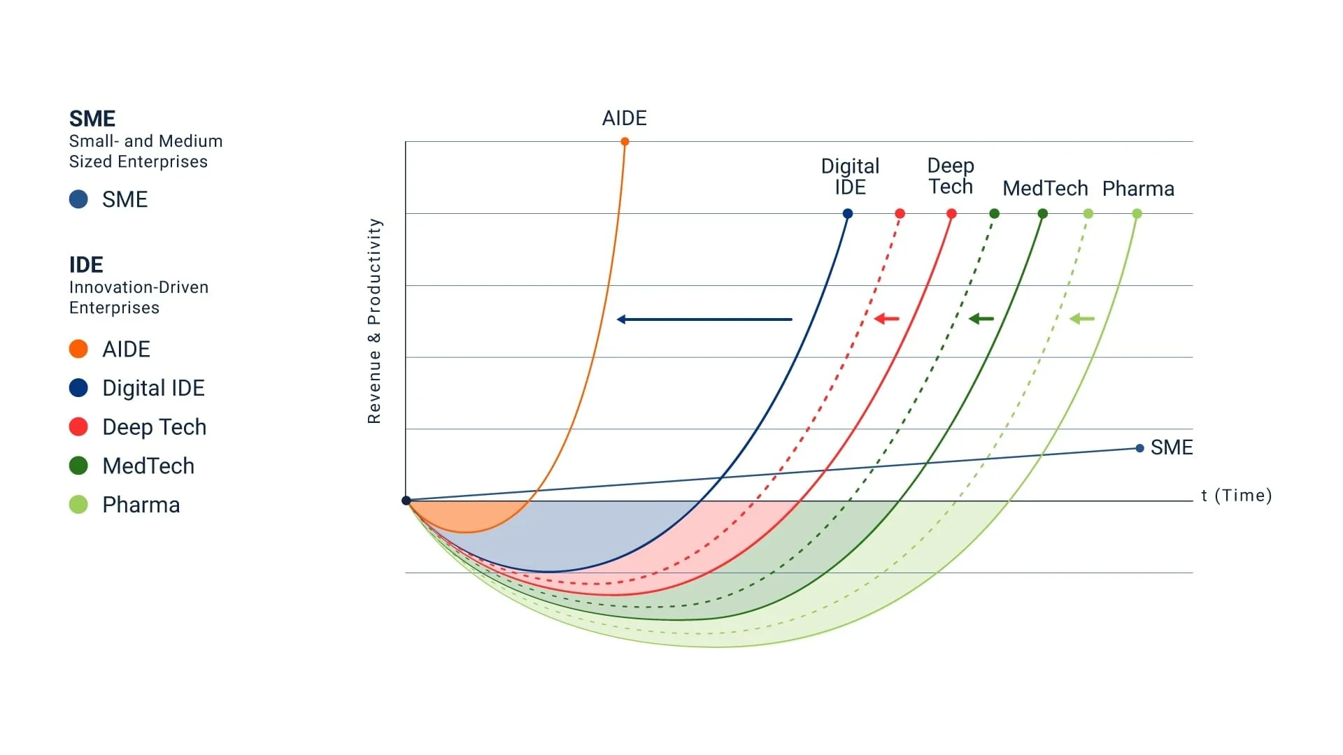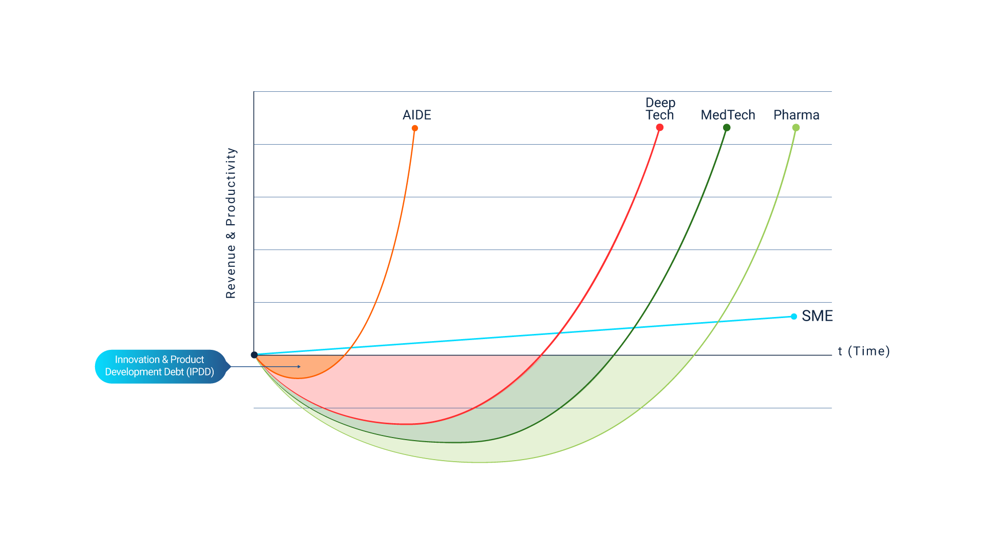 The application of AI within deep tech, medtech, and pharma startups has the potential to drive a dramatic shift in societal progress. This approach can accelerate the future by launching a greater number of world-changing innovations. Much like the AIDE model shortens timelines, reduces IPDD and resource needs, and increases potential impact for IDEs, those deep tech, medtech, and pharma companies that have longer time to market can also apply the AIDE model to have a similar effect, albeit at a different scale.